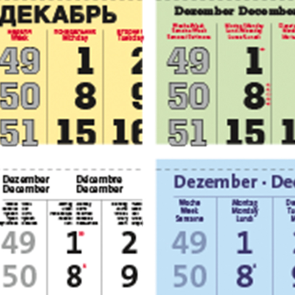 Calendarium kleur: | grijs, blauw, groen, geel, wit |