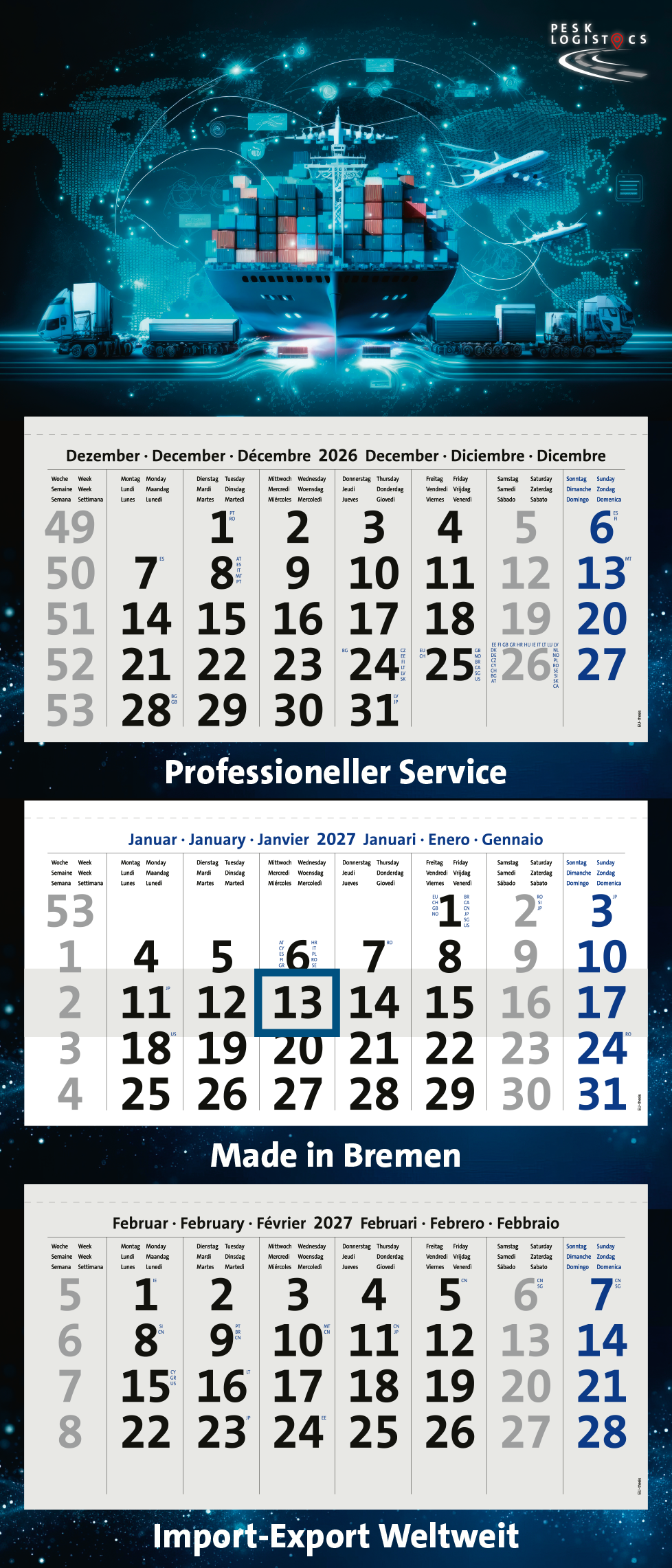 maandkalenders zijn de meest gebruikte kalenders in handel, transport en industrie